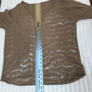 Women's Avec Sequins Blouse Top Scoop Neck Half Sleeve XL Cotton Brown