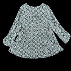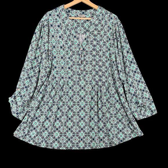 Womens Avenue Tunic Top Blue Teal Geo Print Sz 26 28 Boho Stretch