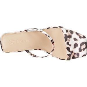 Women's Avery Square Toe Two Strap High Heeled Leopard Sandal.