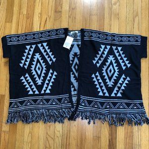 - DOUBLE-LAYER MIRROR-IMAGE KNITTING WARM FRINGED CARDIGAN PONCHO WITH AZTEC PATTERN