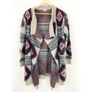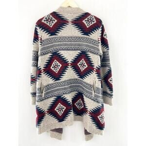 Women's Aztec Southwestern Knit Cardigan Sweater size S/M Open Front Waterfall