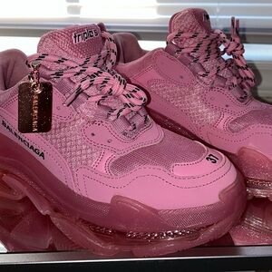Balenciaga Triple S Clear Sole Sneakers in Pastel Pink Polyester