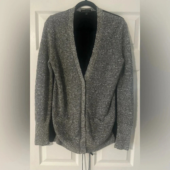 Women's BANANA REPUBLIC Woven-Back V Neck Cardigan Gray Black.