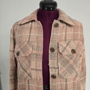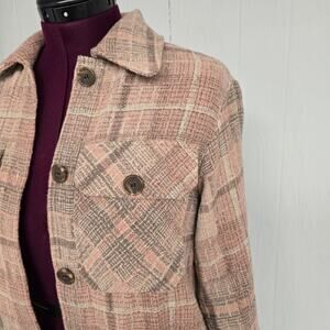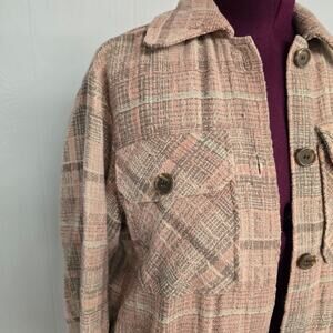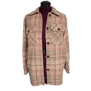 Excellent condition, women's BB Dakota pink and gray plaid shacket. This jacket is not lined. It does have pockets. This material doesn't stretch.