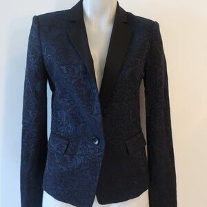 Womens BCBGMaxazria Philipe Dark Navy Black Lace Jacquard Jacket Blazer S