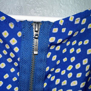 Women's BCBGeneration Blue Yellow Polka Dot Peplum Blouse XS Pockets Zip Up
