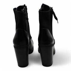 BCBGENERATION Womens Black Stretch Cushioned Lug Sole Lace Pilas Cap Toe Block Heel Zip-up Booties