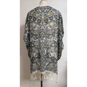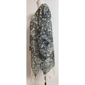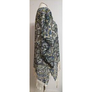 The product is a Women's BECCA By Rebecca Virtue Floral Print Crochet Trim Swim Cover in size Medium/Large. Made of polyester, this colorful cover-up features a vibrant floral pattern with crochet accents, perfect for beach or poolside wear. Its lightweight and sheer design adds a bohemian touch to the beach-themed garment, making it a stylish choice for women looking to elevate their swimwear ensemble. The hand wash only care instructions ensure the longevity and maintenance of this chic and trendy cover-up, ideal for those who appreciate quality and style in their clothing choices.