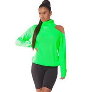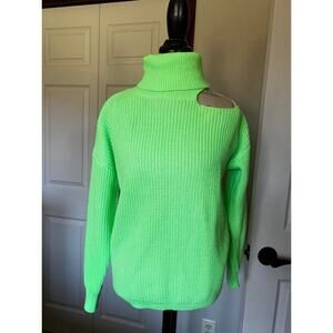 Women's BETTER BE Turtleneck Neon Green Knit Sweater S/M