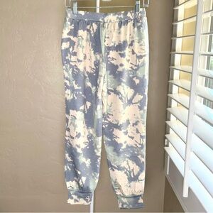 Women’s BKE Tie Dye Cozy Joggers Sweatpants Small Light Blue and Cream