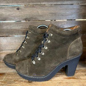 Womens BOC Born Brown Suede Chunky Heeled Lace Up Combat Boots Size 8.5 M GUC