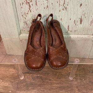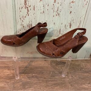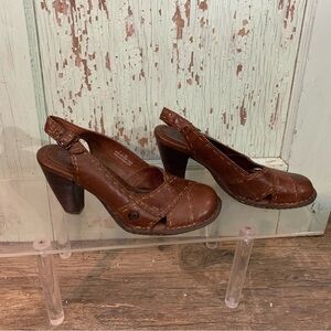 Women’s BOC brown leather size 7 heels with rounded toe and boho vibe Preloved