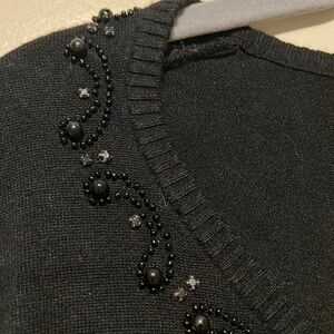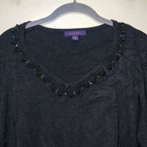 Women’s BOGARI silk blend beaded black sweater top size Large