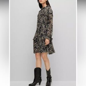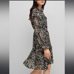 A long-sleeved dress in crepe georgette with an inner slip by BOSS Womenswear. Featuring a faux-leather tie belt at the waist, this feminine dress is printed all over with a new-season motif and trimmed with romantic frills. This garment is made from at least 60% certified recycled polyester. Recycled polyester is an artificial fiber made from oil-based waste such as old PET bottles. It is a more sustainable option compared to conventional polyester, as we can reuse a material that has already been produced. Using recycled polyester also reduces plastic waste and stops it from ending up in landfills. We only use raw materials with a verified chain of custody to ensure the use of certified recycled polyester.