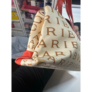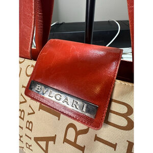 Women's BVLGARI Beige Red Logo Canvas Leather Shoulder Bag One Size
