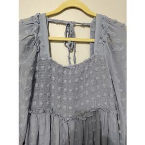Women's Baby Blue Clip Dot Puff Sleeve Chiffon Midi Dress Size XL. Gently used. No tags/No brand name. Lightweight easy to pack for travel. Looks great with sneakers, boots, sandals or heels.