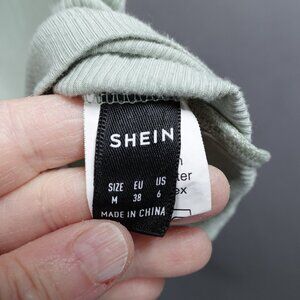 Womens Baby Tee Tank Top Medium Green Cropped Clean Girl Basic Ribbed Y2K Retro