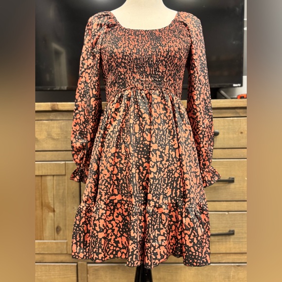 Women’s Babydoll Style Dress Size M NWT Black And Rust Coloring