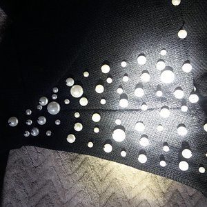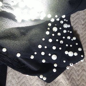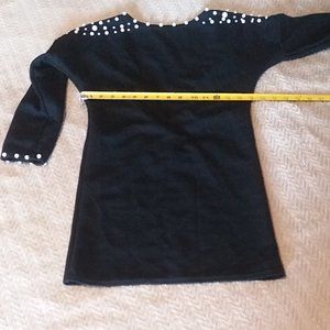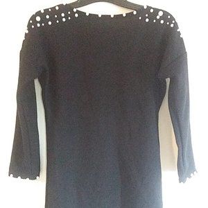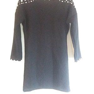 Women's Backless Mini Dress With Beaded Trim/Faux Pearls - Color Black - Size Small. 3/4 sleeves.