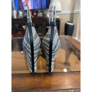Women’s Badgley Mischka Black / Beige Wedge Heels. Size 8.5