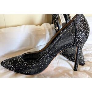 Gorgeous and sexy black and rhinestone studded mesh/satin stilettos from Badgley Mischka in women's size us 6.