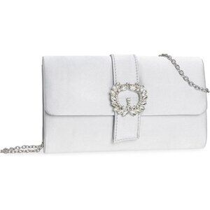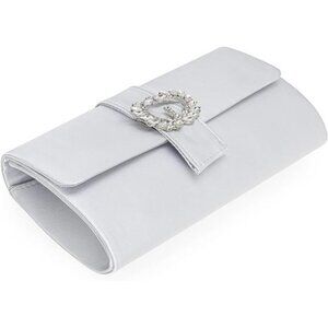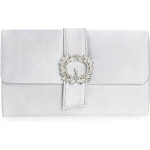 Womens Bag Diamantes Embellished Satin Clutch White