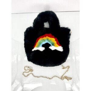 Brand New Women's Bag - Lala By Design Black and Rainbow Purse Bag Faux Fur and Leather. The inside is vegan leather while the outside is faux fur. There is a chain that can be put on so it can be a shoulder bag. This was sold by the brand Lala By Design that is Based in Utah! I have a bunch of dresses and clothing by Lala so please look at my store for more!!!