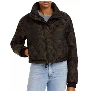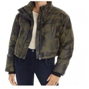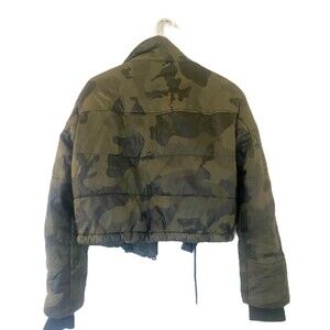 Womens Bagatelle. NYC Coated Camo / Orange Puffer Jacket Cropped Zipper Size S