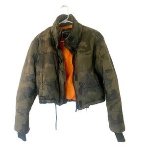Women’s Bagatelle. NYC Coated Camo / Orange Puffer Jacket Cropped Zipper Size S