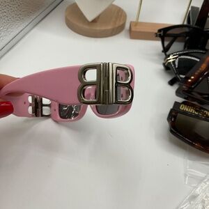 Womens Balenciaga Rectangular Sunglasses - Pink/Silver