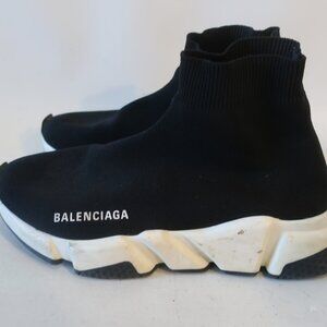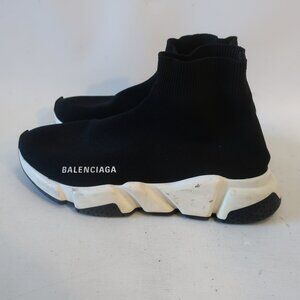 Womens Balenciaga Speed Knit Black White Pull-On High Top Sneakers 38 US/8