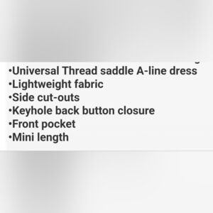 Woven A-line dress in mini length, round neckline, elasticized waist with side cutouts, balloon long sleeves. Lightweight fabric, keyhole back button closure, front pocket.