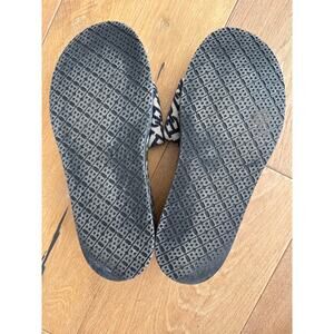 Navy and white jaquard logo sandals. Platform, padded leather footbed, round toe slip on.