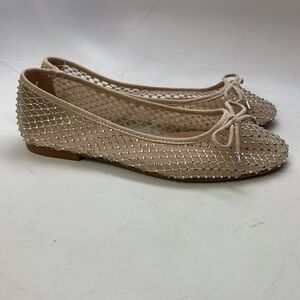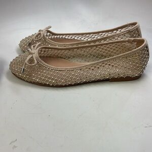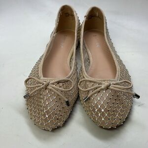 Women’s Bamboo Mesh Ballet Flats with Rhinestone and Bow Accents Size 6 NWOT