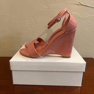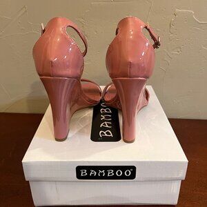 Women's Bamboo Pink Patent Wedge Sandals - Ankle Strap - Size 6.5