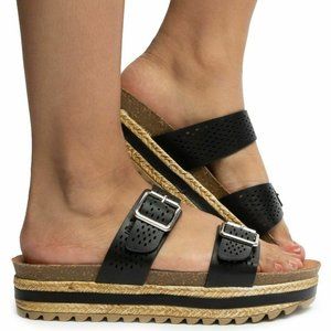 Womens Bamboo Platform flatform Black Two Strap buckle Slide Sandals Size 6.5