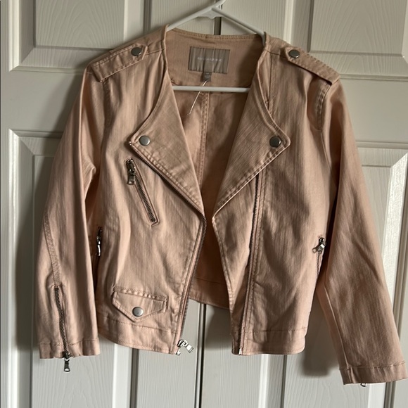 Elevate your style with this chic cropped Banana Republic pink moto jacket. Perfect for adding a touch of edge to any outfit. Excellent condition.