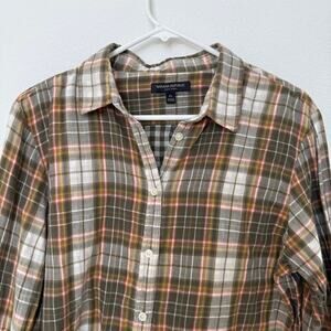 Women's Banana Republic Soft Wash Button Up XL Green Orange Yellow Cotton