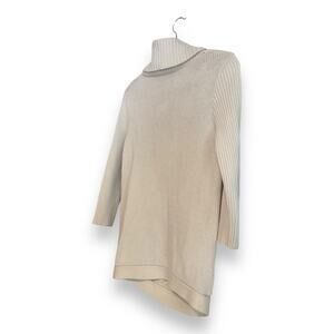 Womens Banana Republic White Cowl Neck Cable Knit Side Button Sweater Size Large