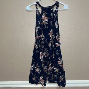 Women’s Band of Gypsies Navy blue floral mini dress picnic summer boho indie