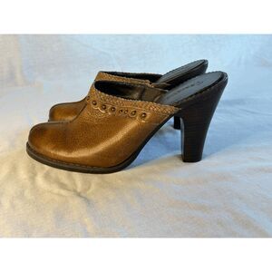 Women's Bare Traps Mule/Clog Heeled Shoes, Brown Leather Size 8.5 Slip-on