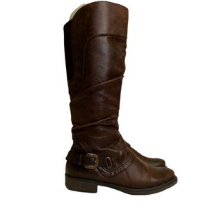 Solid looks and serious comfort make the Baretraps boot a smart choice. Highlighted with buckle strap detail, this boot is enhanced by a side zip closure and supportive block heel.