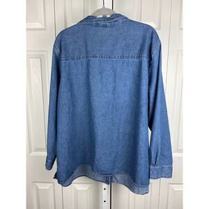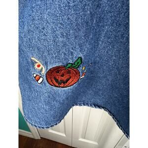 Womens Basic Editions 3X Denim Halloween Trick or Treat Embroidered Blouse Top