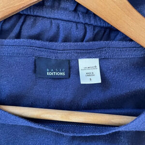 Women’s. Basic Editions. Navy blue casual dress. Pullover. Drawstring waist. Casual. Cover-up. Preowned. No stains/tears. Size Small.
