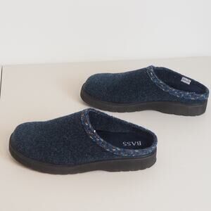 Women's Bass Burke Navy Blue Wool Slip On Clogs Mules Shoes Sz 10 M