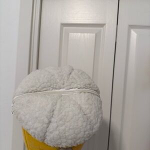 Sherpa on top of beer stein has a few areas that are not completely white, but hardly noticeable at all. This bag MAKES this outfit!
