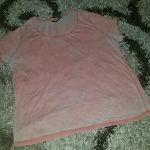 Casual top in coral & white. Shirt is in good used condition. No rips or holes. Price reflects use. Still has left left. Wore during morning walks.