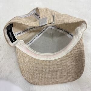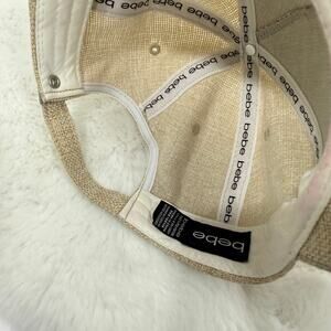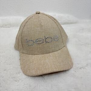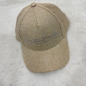 Women's BeBe Rhinestone Adjustable Baseball Hat Cap Burlap Look Tan
