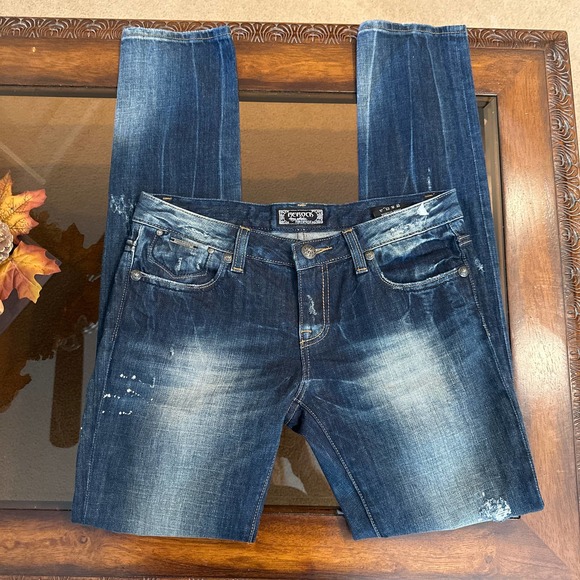 32” inseam and slight distressed skinny jeans with a little acid wash