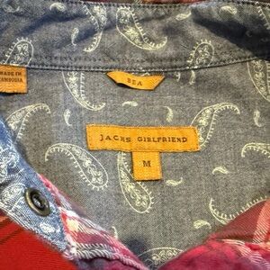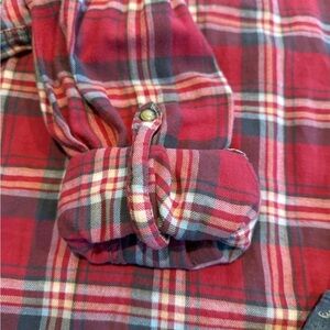 Women’s Bea Jachs Girlfriend Flannel. Red pearl snap buttons. Flipped cuff M
